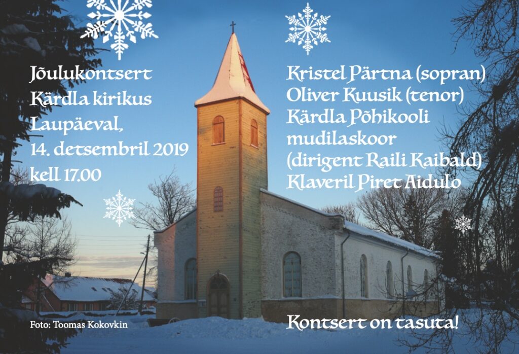 Kutsume kõiki hiidlasi ja Hiiumaa sõpru jõulukontserdile Kärdla kirikusse laupäeval, 14. detsembril algusega kell 17.00. Kontsert on tasuta, kohapeal on võimalus teha annetusi, et kiriku renoveerimisprotsessi saaks lõpetada üheetapilisena, lõpptähtajaga juuni 2020.